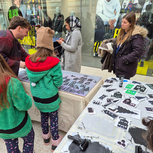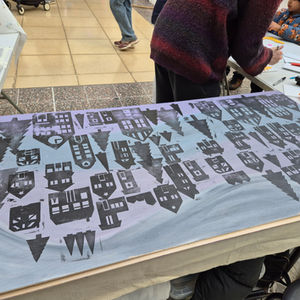 We had so much fun at Christmas on the cobbles! Thank you to Aylesbury town council for organising such a fun event and inviting us to participate. We had 130 families add to our printed Christmas village. It was great to show what you can do with simple materials and lots of people had a go at making their own print plates using funky foam and foam board. I will be finishing the prints off with some sparkles over the next couple of weeks, so check back for updates!